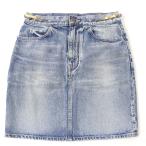 未使用品☆CELINE セリーヌ S195 571Q 08YC コットン ロゴプレートチェーン付 ウォッシュ デニム スカート インディゴ 28 (レディース約S-Mサイズ相当) 日本製 正規品 レディース【中古】