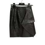 美品 CELINE セリーヌ サイドフリル レザー スカート 2H058921D サイズ36 ブラック レディース 古着 中古