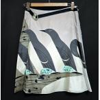 #anc セリーヌ CELINE スカート 34 グレー系 カーキ系 マルチ シルク フランス製 薄手 鳥柄 ベルト付き 小さいサイズ レディース [841143]
