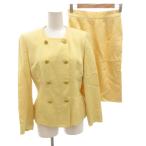 セリーヌ CELINE ヴィンテージ セットアップ スーツ フォーマル ノーカラージャケット スカート 金ボタン 38 黄 イエロー /FF ■GY62 レデ