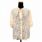 【中古】未使用品 22ss セリーヌ CELINE by Hedi Slimane 花柄 ボウタイ シルク シャツ カットソー ブラウス バルーンスリーブ シースルー シアー リボン エディ期 40 ベージュ オレンジ レディース ▼5 【ベクトル 古着】 230522