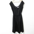 美品 CELINE セリーヌ ノースリーブ ひざ丈 ミディ丈 ベルテッド フレア ワンピース ドレス ブラック レディース 古着 中古