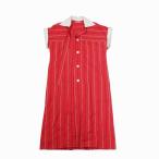 美品 Vintage CELINE セリーヌ フランス製 ストライプ柄 シャツ ワンピース 半袖 衿付き オールド 40 L レッド レディース 【中古】