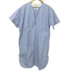 良品 CELINE セリーヌ フィービー期 膝丈 半袖 スリットネック ストライプ ワンピース XS ブルー×ホワイト レディース 古着 中古