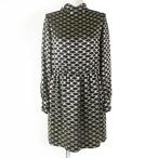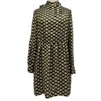 未使用 セリーヌ CELINE ワンピース ボウタイ 総柄 トリオンフ シルク ブラック ゴールド