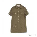 セリーヌ CELINE ミリタリーポケットシャツワンピース トリオンフ ワンピース コットン カーキグリーン 2Z488106K レディース 中古