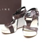 CELINE セリーヌ ウェッジソール ストラップサンダル ホワイト×ブラウン 36 ITHLKLUKTNPC