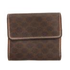 セリーヌ CELINE 二つ折り財布 マカダム柄 がま口 ゴールド金具 ブラウン系 ■GY99 レディース