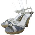 セリーヌ CELINE ウェッジヒール サンダル ミュール デニム 白 ホワイト 水色系 約24cm IBO81