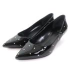 極美品★CELINE セリーヌ スタッズ付 ポインテッドトゥ パテントレザー パンプス ブラック シルバー金具 36.5 箱付き イタリア製