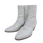 美品 CELINE セリーヌ CUBAINE キューバン クロコ型押し レザー ショート ブーツ 38 1/2 25.5cm相当 ホワイト レディース 古着 中古