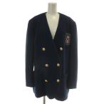 セリーヌ CELINE ヴィンテージ ノーカラージャケット アウター ダブル ロゴ 刺繍 ワッペン 金ボタン 44 紺 ネイビー