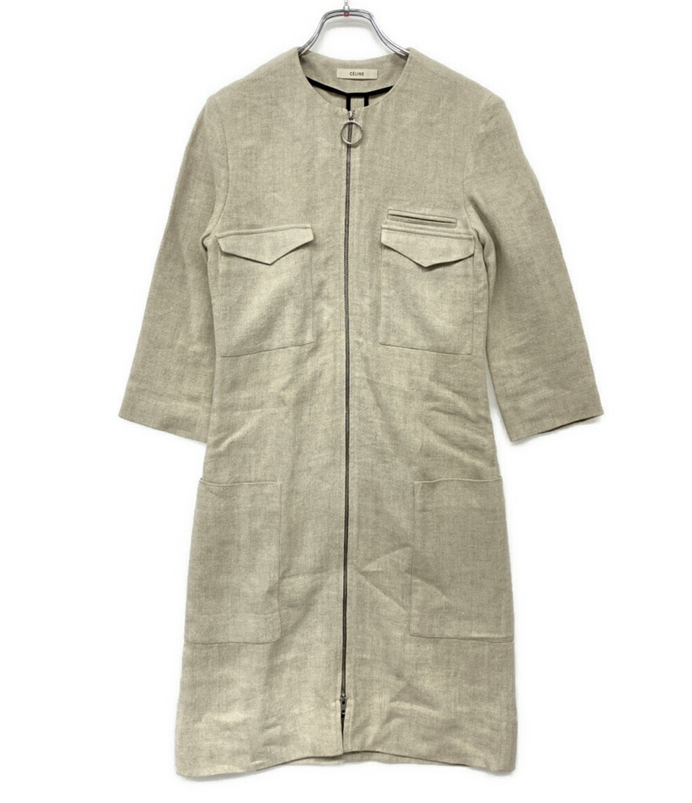 【全品5%OFFクーポン30日23:59迄】【中古】 セリーヌ リネン七分袖ワンピース ベージュ 2 6N86 2857 レディース SIZE 34 CELINE