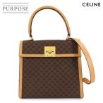 新品同様 セリーヌ CELINE マカダム ガンチーニ ハンド バッグ PVC レザー ブラウン ゴールド 金具 ヴィンテージ 90306220