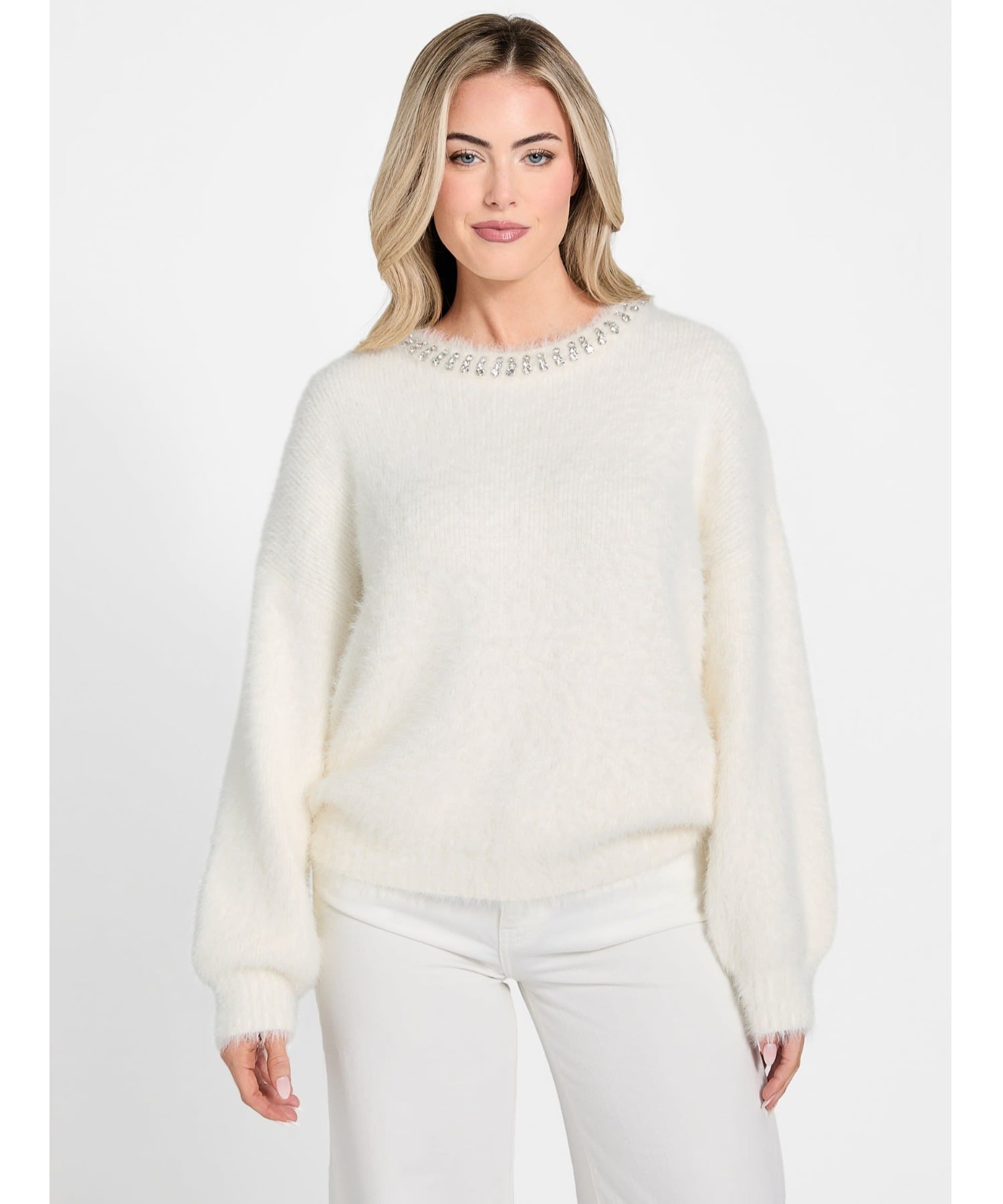 【SALE/20%OFF】GUESS GUESS ニット セーター (W)Arisa Rhinestone Sweater ゲス トップス ニット ホワイト【送料無料】