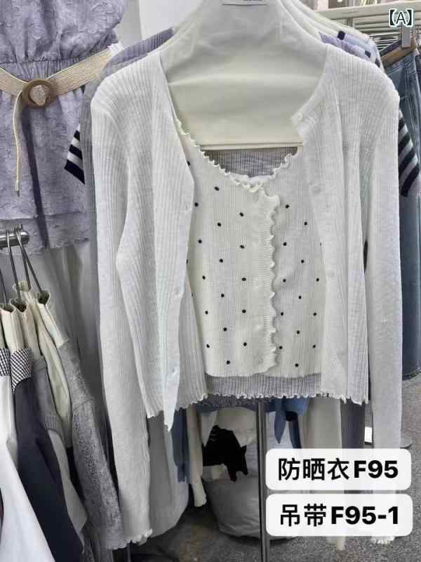 カーディガン レディース ニット 薄手 2点セット タンクトップ付き サマーニット トップス 無地 ラウンドネック 長袖 紫外線対策 冷房対策 接触冷感 ゆったり かわいい ガーリー フェミニン 春夏