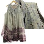 【中古】アズノウアズ ドゥバズ as know as de base ニット転写プリントリボンタイシルクワンピース OG0877 ノースリーブ ミディ丈 シルク100% 総柄 ベージュ アイボリー ブルーグレー エンジ ブラウン 茶 レディース 【ベクトル 古着】 260208