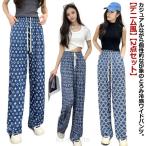 デニム風 柄パンツ ワイドパンツ 総柄 レディース タイパンツ 接触冷感 ロング パンツ 薄手 アイス シルク パンツ 夏 ルームウェア 部屋着 イー