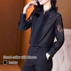 ブラウス レディース スタンドカラーシルクブラウス ブランド 人気 シャツ オフィス 春 夏 黒 おしゃれ 30代 冬 フォーマル レース 40代 50代 20代 長袖 秋 白