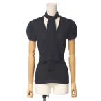 CELINE セリーヌ Vネック ネクタイ ブラウス シルク 金属繊維 ブラック ゴールド #36 シャツ ドット リボン タイ シースルー 【中古】