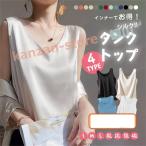 タンクトップ シルク キャミソール レディース 4タイプ インナー 大きいサイズ トップス ノースリーブ シャツ シルクサテン ショート丈