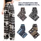 タイパンツ ワイドパンツ ゾウ ゆったり パンツ エスニック 象柄 接触冷感 ロングパンツ 涼しい 部屋着 涼感 落ち感 夏 冷感 柄パンツ 接触冷感