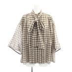 ドゥロワー Drawer ウールシルク チェック タイカラー フレアスリーブ シアーシャツ 七分袖 36 茶 ブラウン ベージュ ■OS レディース
