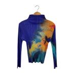 【中古】 プリーツプリーズPLEATS PLEASE タイダイプリントプリーツハイネックカットソー 紺茶黒3【レディース】