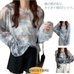 ニュアンスタイダイ シアーカットソー プルオーバー トップス 長袖 シアーシャツ ブラウス 韓国ファッション オケージョン Tシャツ ロンT 透け感 涼しい