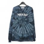 メッキ MEKKI タイダイ染め ロゴプリント Tシャツ カットソー ロンT 長袖 総柄 紺 ネイビー レディース