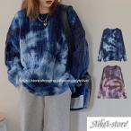 ニット レディース トップス セーター 秋冬 長袖 大きめ ゆったり 丸首 クルーネック タイダイ染めケーブル編みニット