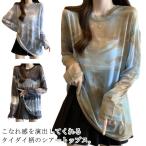 春夏 カットソー レディース 長袖 Tシャツ ロンT チュニック タイダイ柄 シアーブラウス シアーシャツ シアーインナー 薄手 薄い ビッグシルエット 透け感 大きいサイズ シアーシャツ ラウンドネック シフォン生地 やわらかい トレンド