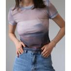 tシャツ ニュアンスプリントシアートップス/nuance print sheer top 半袖 クルーネック シースルー マーブル柄 グラデーション