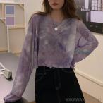 長袖シアートップス 長袖 シアー シースルー タイダイ柄 マーブル グラデーション ショート丈 透け感 レイヤード 重ね着 抜け感 ゆったり レディース 夏 春 おで