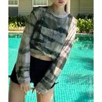 水着 レディース水着 長袖タイダイ柄クロップドトップス+キャミソール風ビキニ 上下3点セット 「大きいサイズ有」 レディース