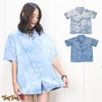 タイダイシャツ レディース メンズ 半袖 涼しい 冷感 !さらさらレーヨン ブラウス 前開き 開襟 ナチュラル シンプル