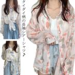 シアーシャツ タイダイ柄 レディース 長袖シャツ ミドル丈 シースルー 透け シャツ ブラウス トップス オーバーサイズ ゆったり ビッグサイズ ビッ