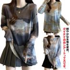 春 柄 タイダイ染 ビッグシルエット BF風 ロングTシャツ プリント カットソー Tシャツ ゆったり tシャツ おしゃれ 大きいサイズ ロンT レデ