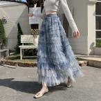 夏タイダイ染めチュールスカートロングフリルティアードスカートウエストゴムチュールスカート涼しいフレアスカート軽いパーティーチュールスカートボトムス