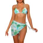 Elerevyo レディース 3 ピース タイダイ ビキニ セット、ホルター 水着 サロン カバーアップ ビーチ スカート 水着 緑 S