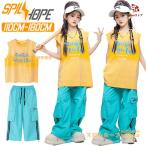 青 黄色 タンクトップ カーゴパンツ タイダイ キッズ ダンス衣装 女の子 男の子 ノースリーブ セットアップ 上下セット トップス パンツ ヒップホップ ジャズダ