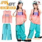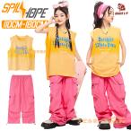 黄色 ピンク タンクトップ カーゴパンツ タイダイ キッズ ダンス衣装 女の子 男の子 ノースリーブ セットアップ 上下セット トップス パンツ ヒップホップ ジャ