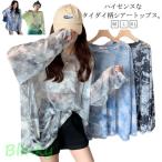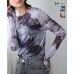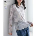シアートップス 長袖タイダイ柄シアーシャツ シアーブラウス カットソー 透け感 ロンT シースルー ラウンドネック チュニック レイヤード