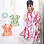 トップス レディース フリンジ付きタイダイポンチョチュニック メール便OK