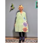 タイダイ チュニック ワンピース 薄萌葱色 (うすもえぎいろ)に3連の可憐な花