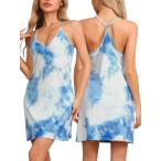 cheibear レディース ノースリーブ タイダイ スパゲッティストラップ シュミーズ ナイトシャツ Vネック ナイトガウン ブルー S
