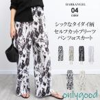 ワイドパンツ プリーセルフカットプリーツ ゆったり 大きいサイズ パンツ スカート【 総柄プリーツパンツ&スカート 】ムラ染め