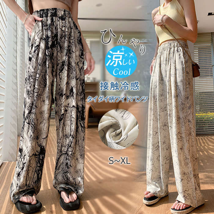 【2280円→実質2098円 8%OFFクーポン11/30 23:59まで】ワイドパンツ レディース パンツ ストレートパンツ タイダイ柄 花柄 ペイント風 涼しい 冷感 ひんやり リラックス 部屋着 長ズボン 韓国ファッション トレンド シンプル ゆったり リラックス おしゃれ 部屋着