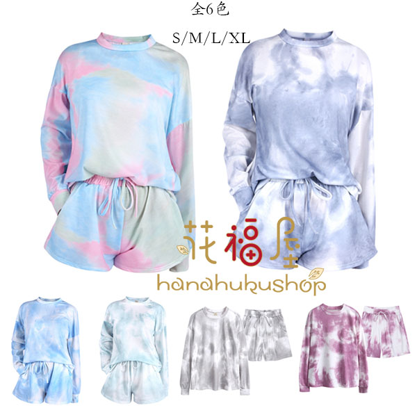 【3980円→実質3662円 8%OFFクーポン11/30 23:59まで】レディース セットアップ タイダイ ホームウェアセット ファッション 長袖Tシャツ+ショートパンツ 2点セット 上下セット レディー 夏服 女性 大人 ジャージ タイダイ スポーツウェア 夏着 全6色 レジャー