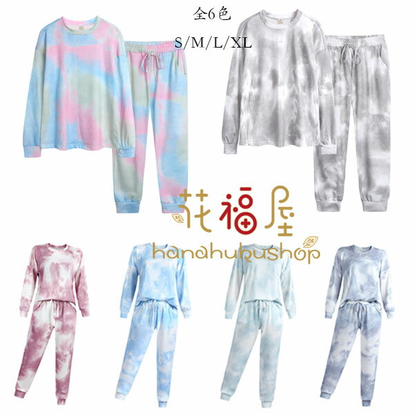 【4280円→実質3938円 8%OFFクーポン11/30 23:59まで】レディース セットアップ タイダイ スポーツ ホームウェアセット Tシャツ+パンツ 2点セット タイダイ 上下セット レディー 春服 秋服 女性 大人 ジャージ スポーツウェア 夏着 長袖 長ズボン 全6色 レジャー